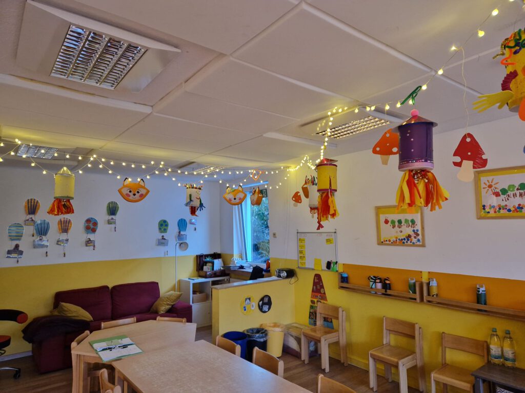 Bis zum St.-Martinszug schmückten die bunten Laternen den Gruppenraum. Die Kinder